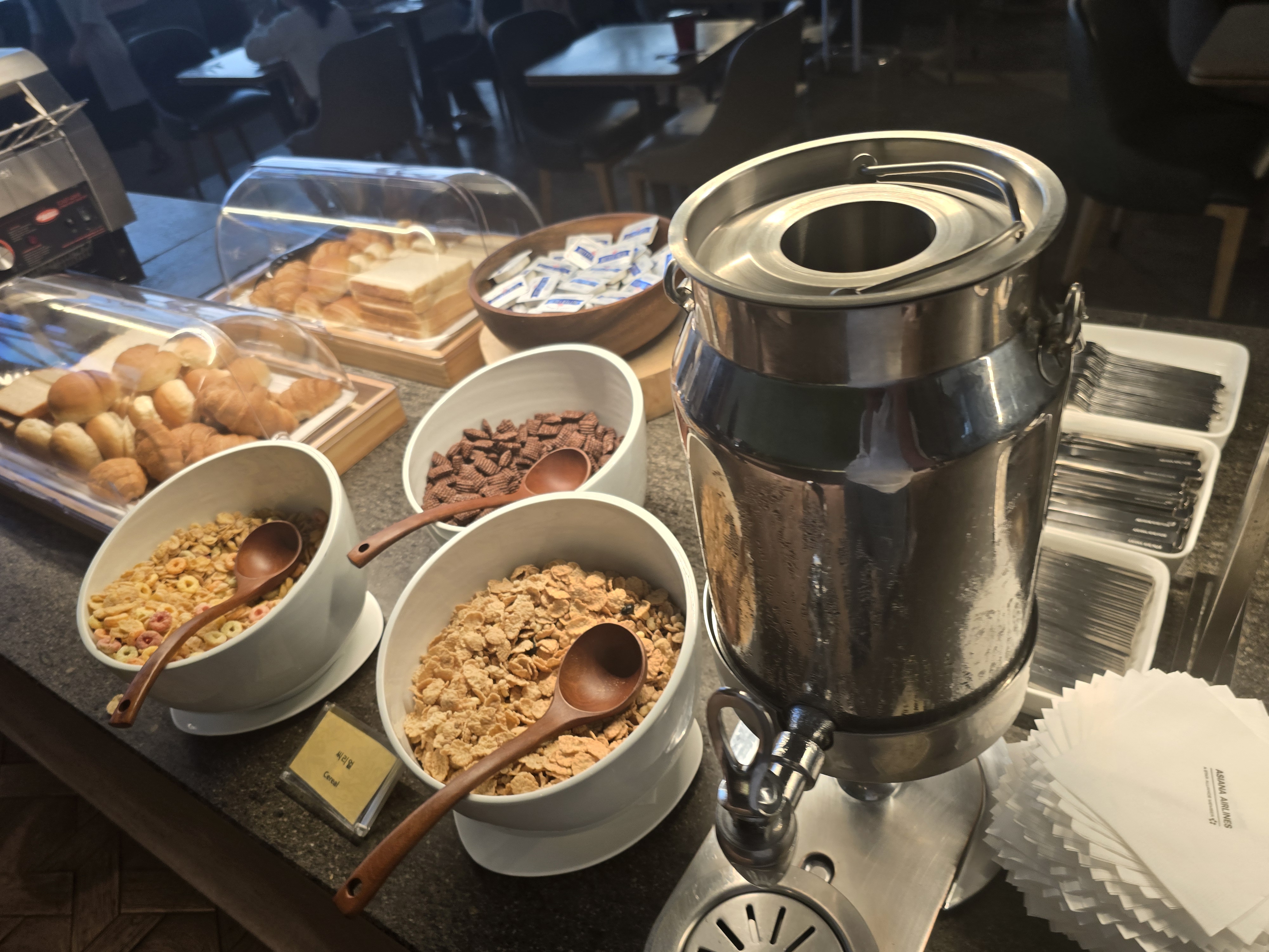 라운지의 가장 큰 장점은 바로 이 여유로움이다. 비행기를 기다리는 시간조차 불편하지 않고, 오히려 기다림 자체가 하나의 ‘경험’처럼 느껴진다. 라운지 안의 와이파이 속도도 빠르고, 충전 포트도 구비되어 있어 모바일 기기 사용에 전혀 불편함이 없었다.