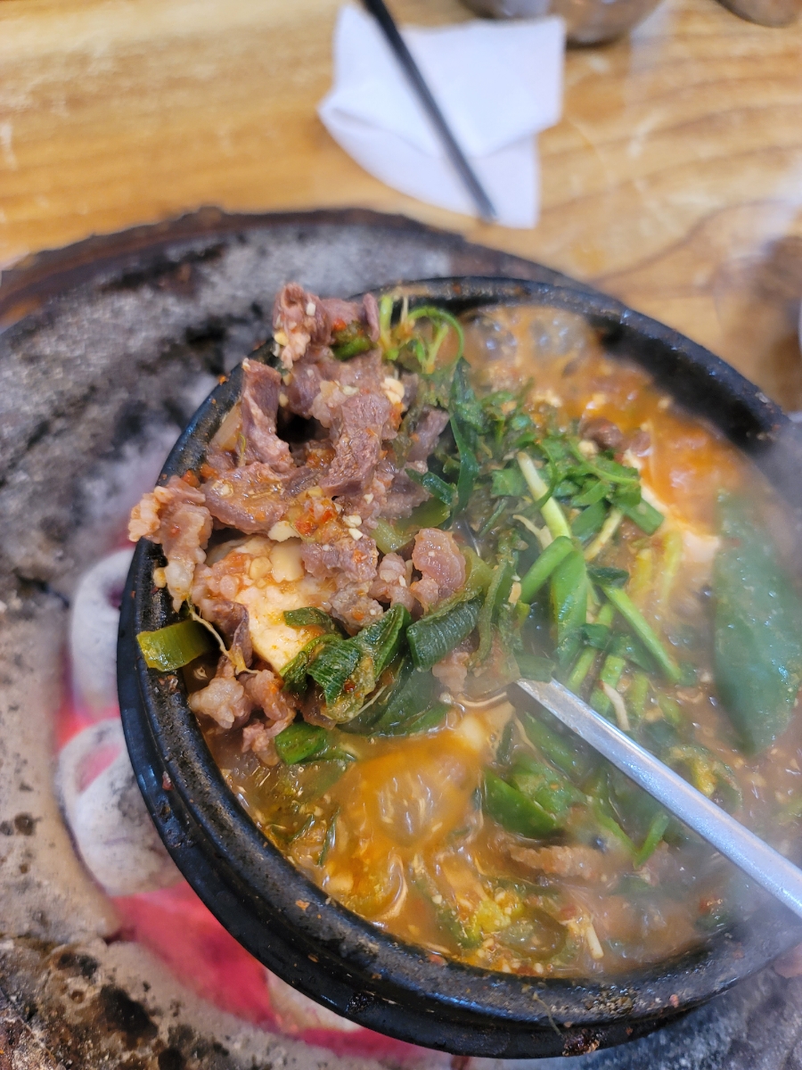 꿀팁! 홀수로 방문하면 양이 더 많아져요! 저희는 5명이 갔는데, 3명 앉은 테이블엔 된찌 2그릇을 주셨어요. 양 진짜 많고, 고기도 많고, 국물도 찐합니다.