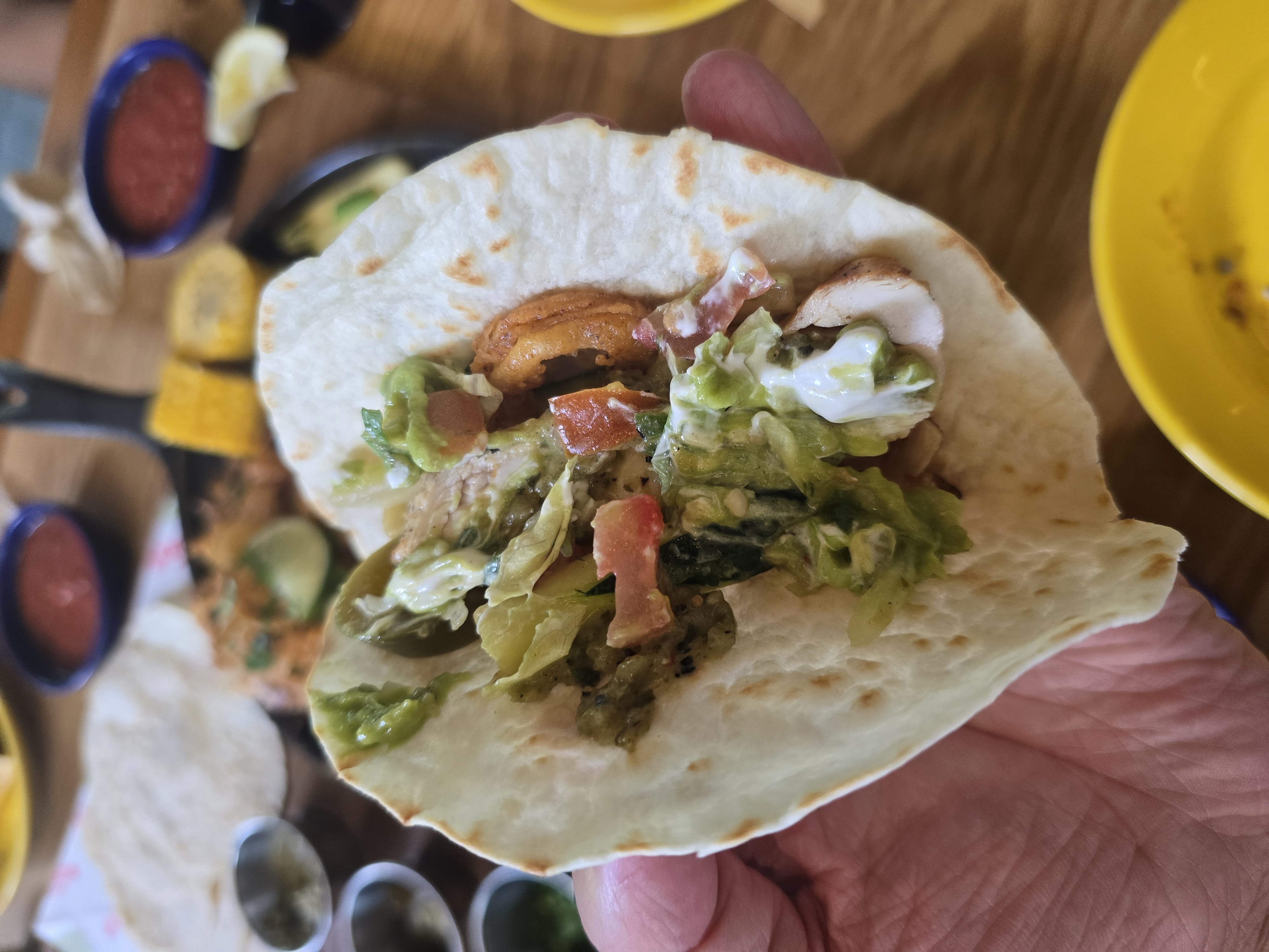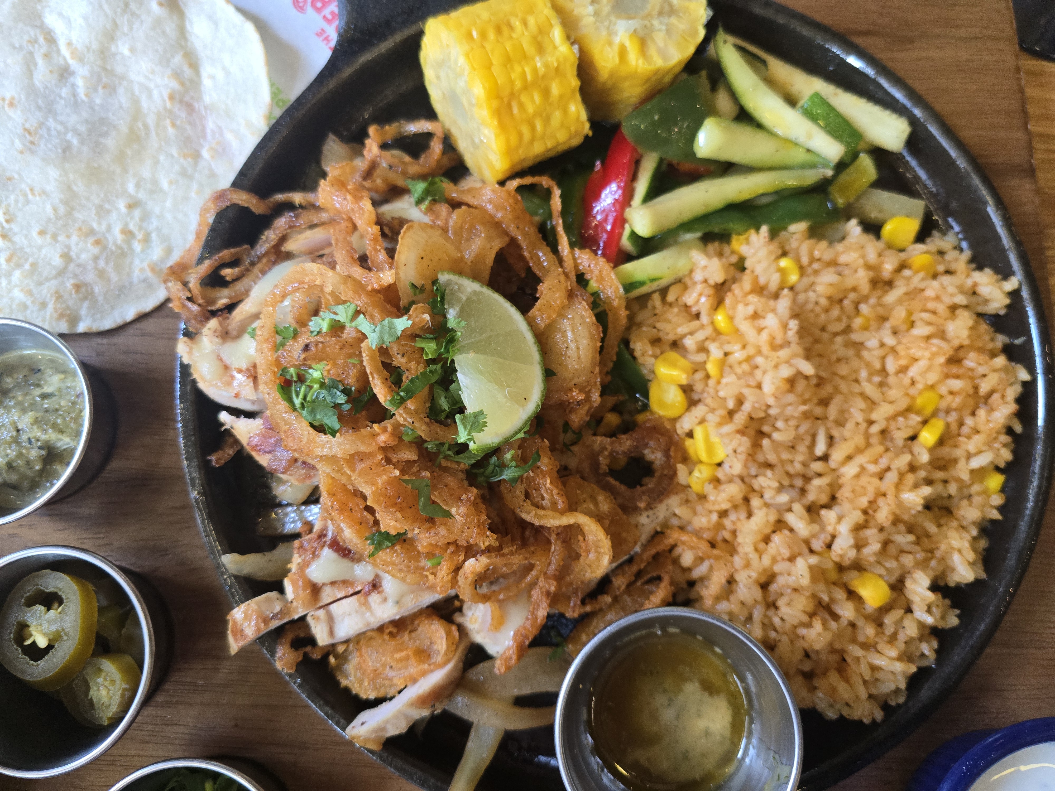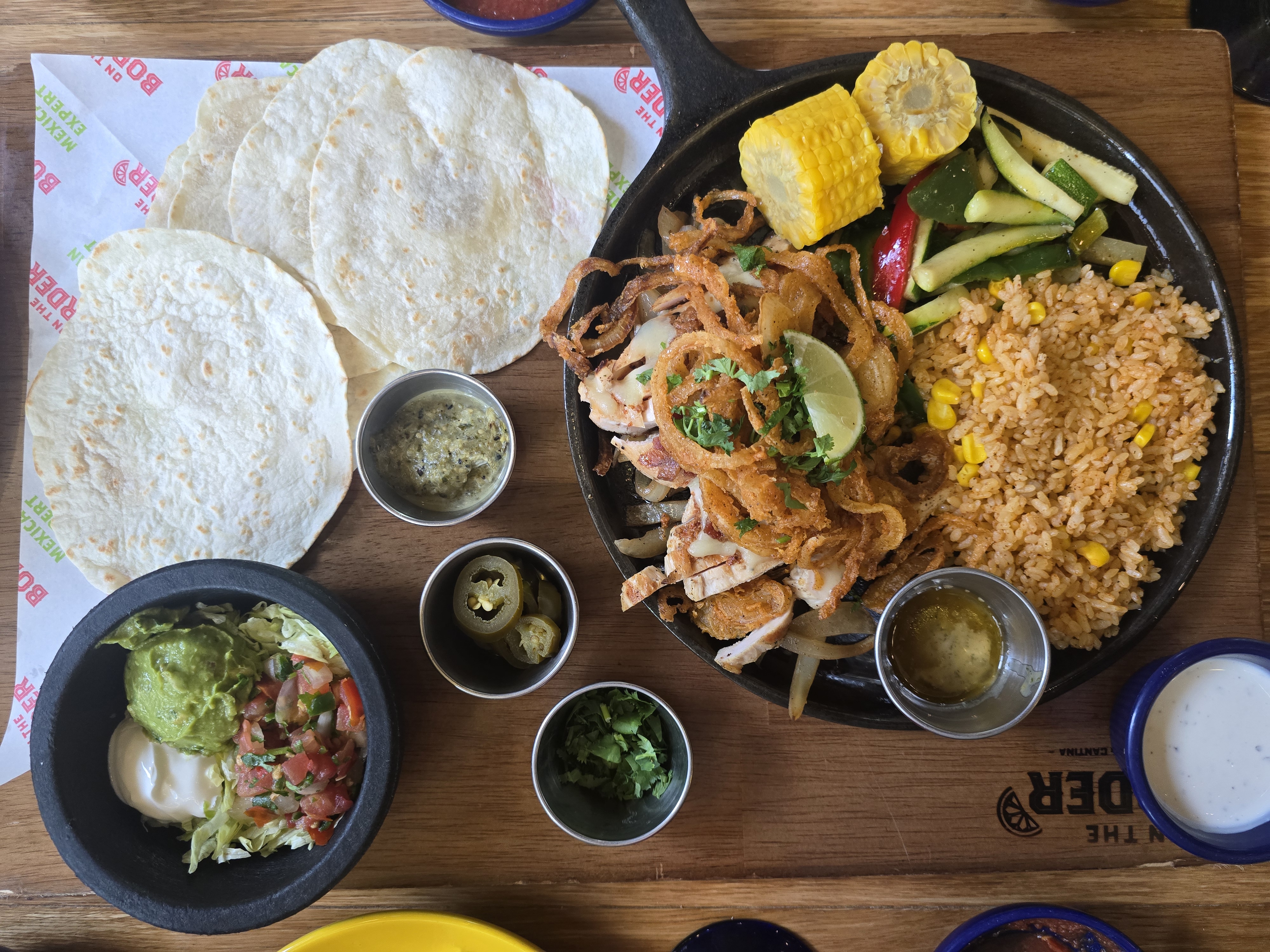 • 치킨 화이타: 지글지글 철판에 구워진 닭고기와 피망, 양파가 식욕을 자극합니다. 토르티야에 싸서 먹으면 구운 채소의 단맛과 부드러운 닭고기가 잘 어우러져 만족스러웠습니다.