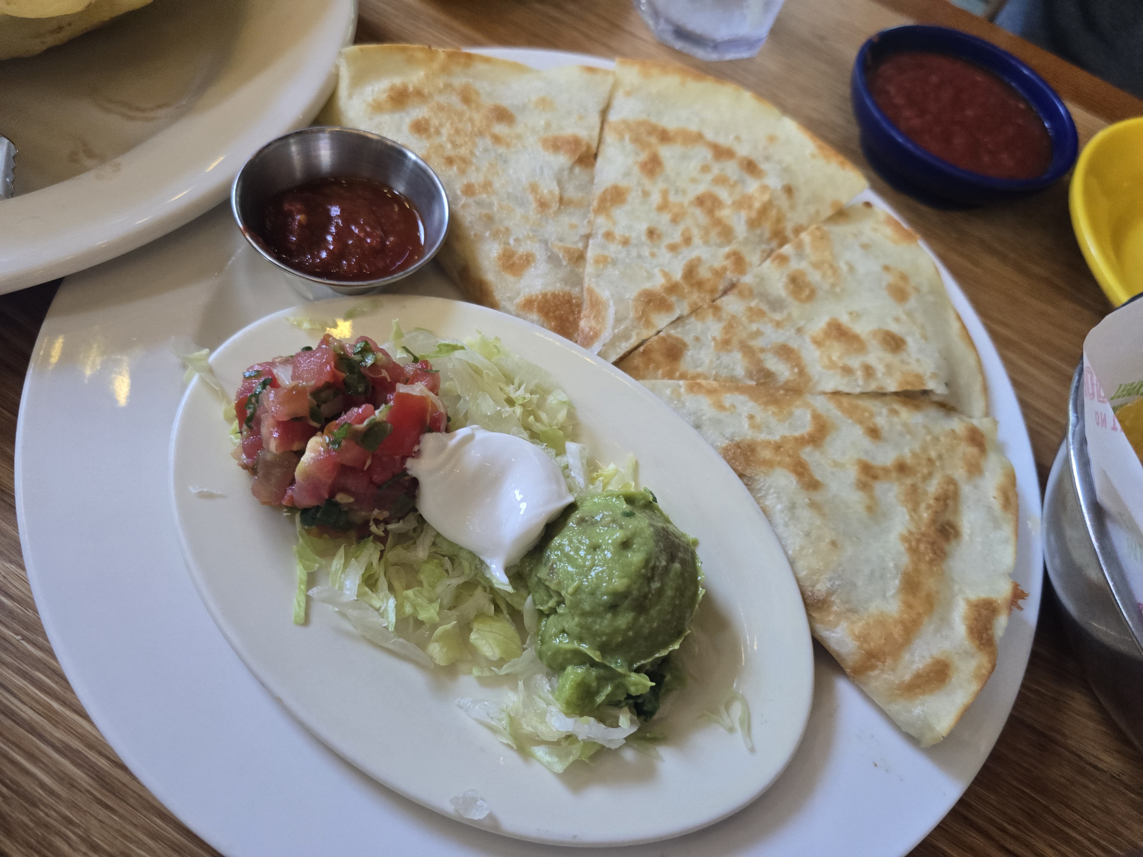 • 클래식 퀘사디아: 바삭한 또띠야 사이에 치즈와 고기가 듬뿍 들어있어 무난하게 즐길 수 있는 메뉴였습니다. 치즈가 쭉 늘어나는 비주얼이 식욕을 한 번 더 자극합니다.