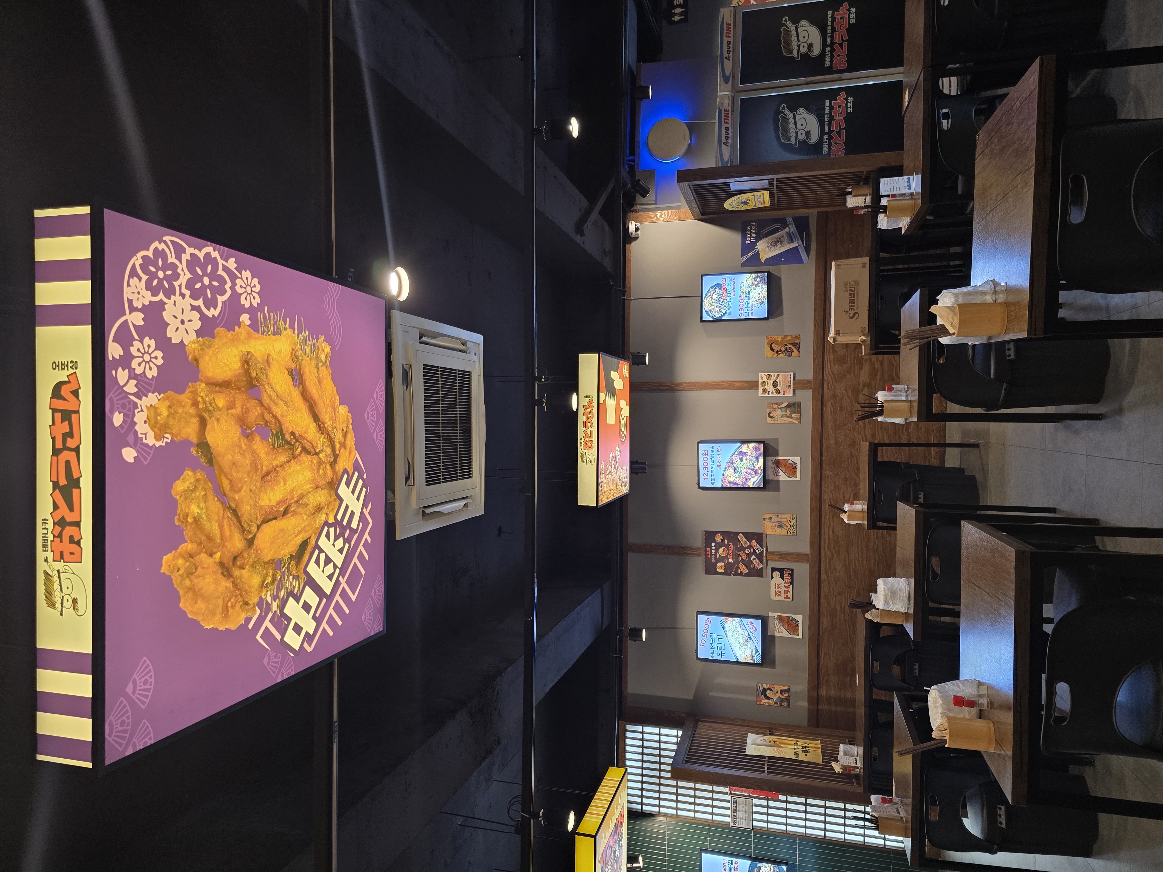 테바나카 오또상의 간판은 단번에 시선을 잡는다. 일본어풍 글씨체와 함께 노란빛 조명 아래 서 있는 캐릭터 일러스트가 귀엽다. 이국적인 분위기지만 거리낌 없이 들어설 수 있는 동네 이자카야 느낌이랄까. 문을 열고 들어서면 조용한 재즈풍 음악이 흐르고, 오픈형 주방에서 닭날개 굽는 소리가 리드미컬하게 들린다. “오늘 하루도 수고했다.” 이런 말이 저절로 떠오르는 공간이다.