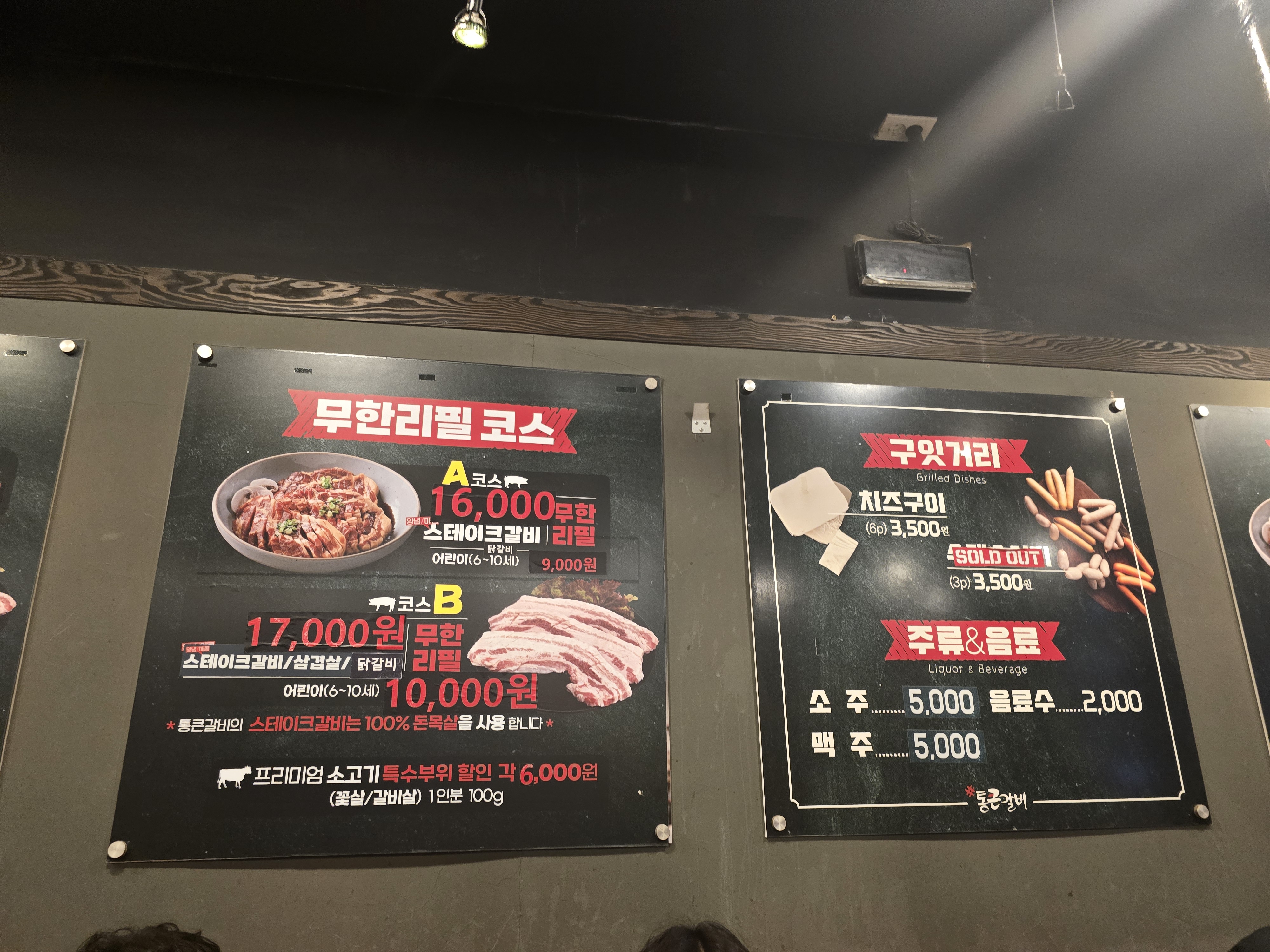 A코스(16,000원)는 스테이크갈비 무한리필,
