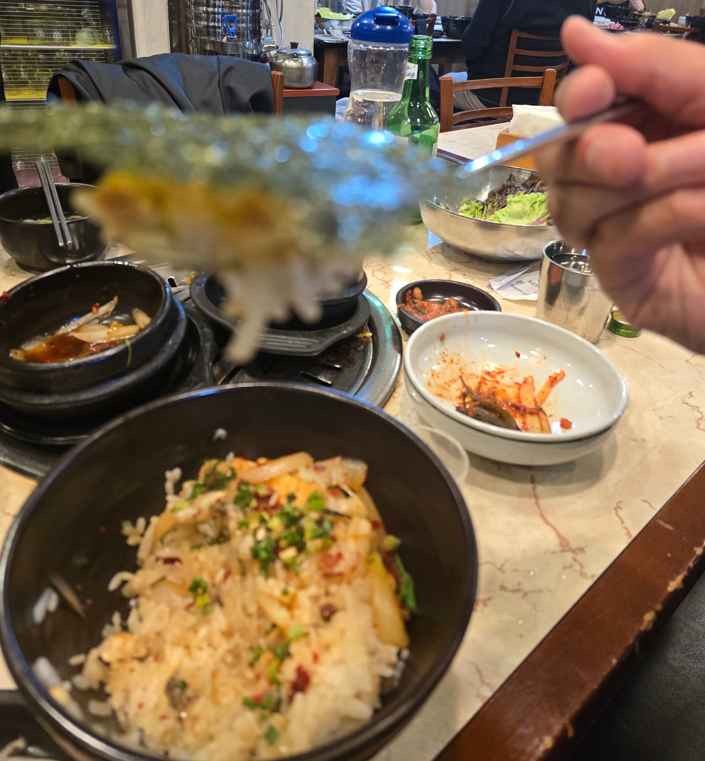 동치미는 고기 중간중간 기름 빼주고, 양파절임은 풍미 리셋 역할이고, 소금과 기름장은 고기의 본질을 가장 명확하게 끌어올린다. 이 흐름은 아무나 못 만든다. 원강은 기본 세팅만 봐도 ‘아, 이 집은 고기를 진짜 아는 집이구나’라는 확신이 든다. 소주병 뚜껑을 열기도 전에 이미 술맛이 난다.