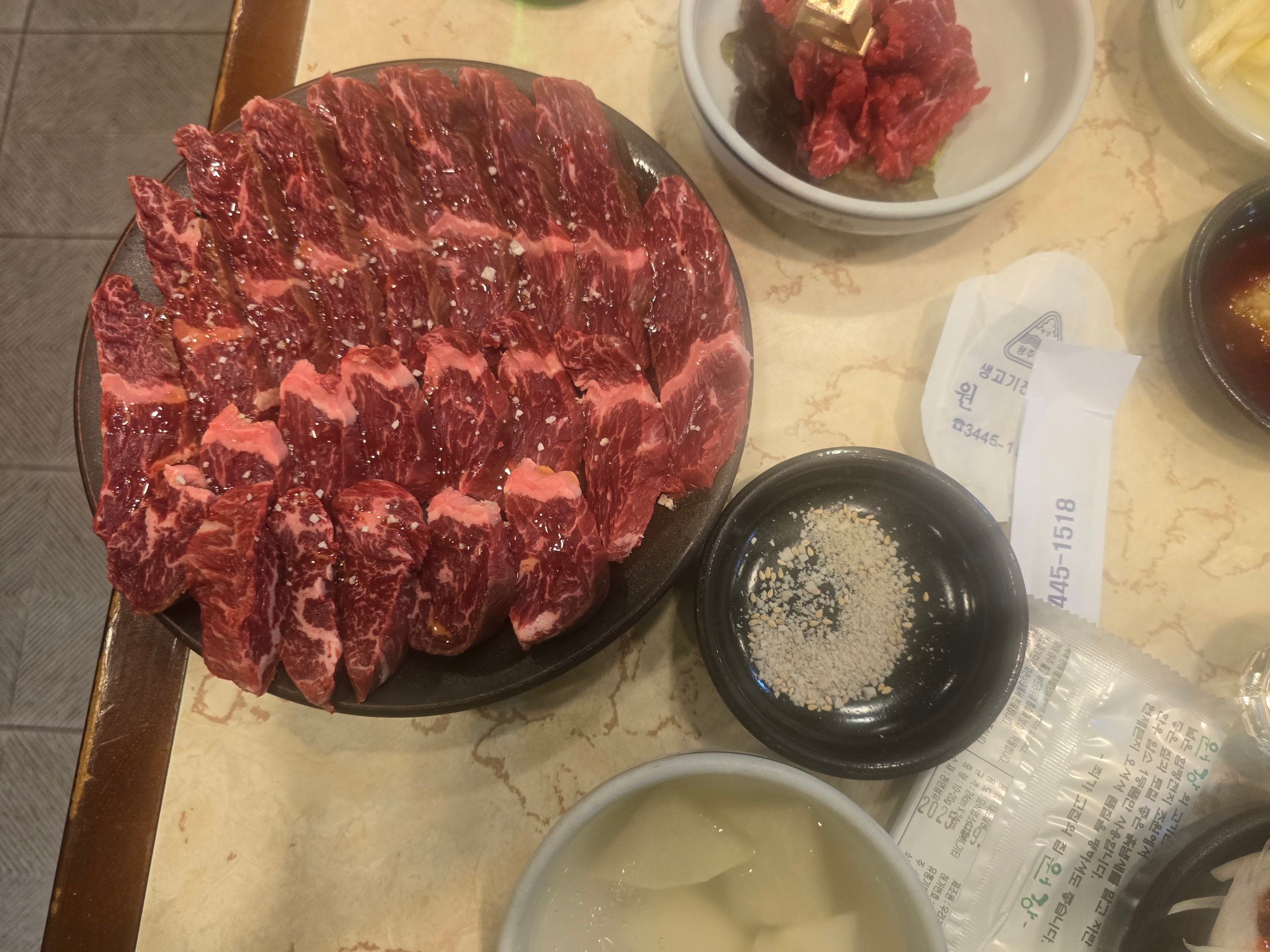 그리고 이 집의 아이덴티티라 할 수 있는 기본 육회(품절 잦음, 보이면 무조건 먹어야 함). 이 육회가 평범하지 않다. 양념으로 감춘 맛이 아니라, 고기 자체의 단맛과 결을 그대로 보여주는 스타일. 기본에 육회가 나온다는 사실 자체가 이미 원강의 방향성을 설명한다.