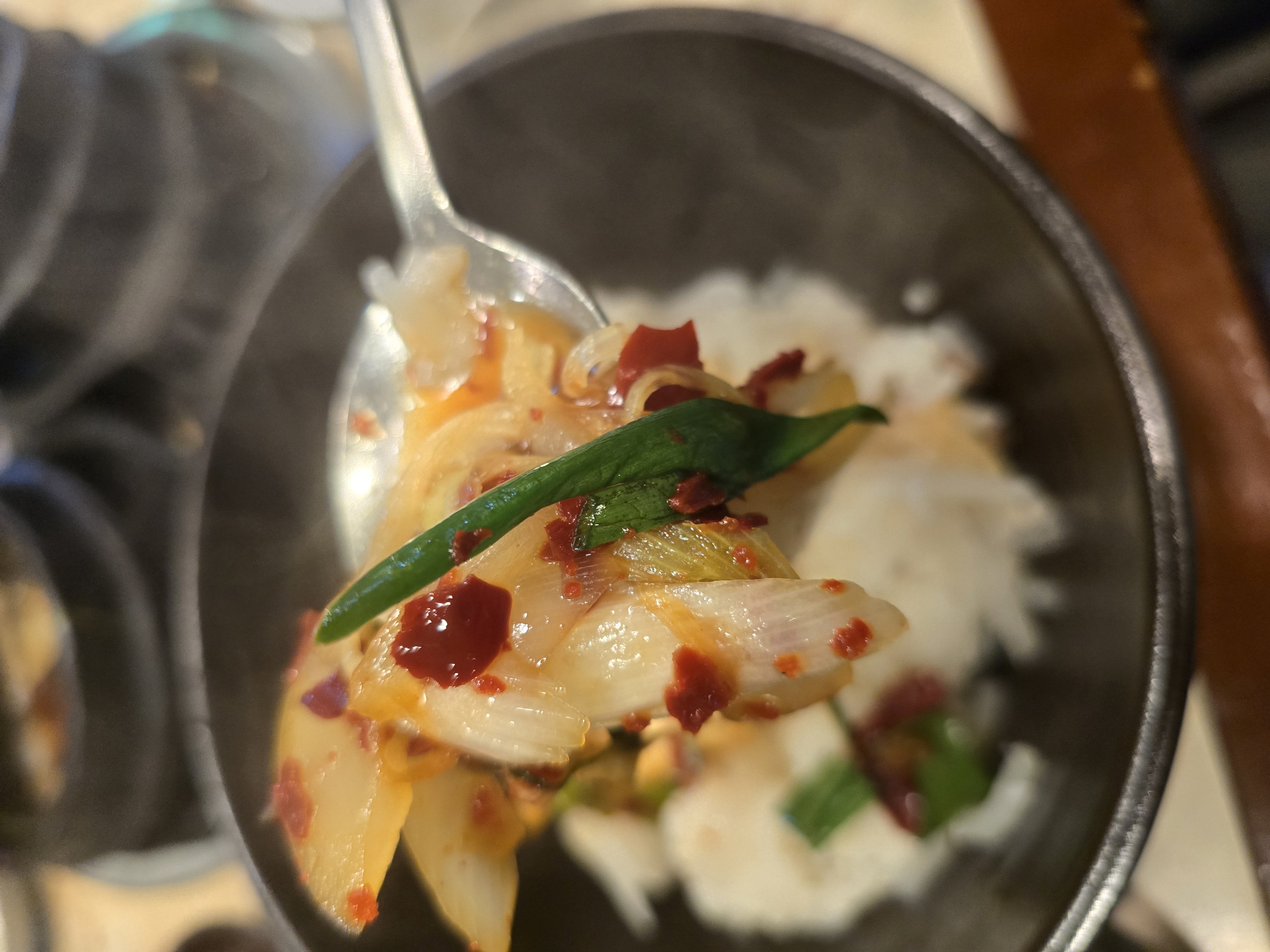 고기를 실컷 먹고 나면 마지막을 장식하는 메뉴가 있다. 바로 무밥. 밥 자체가 투박한데 맛은 반대다. 무의 달큰한 맛, 고깃기름의 감칠맛이 은근하게 배어 있고, 먹다 보면 ‘왜 이게 원강의 필수 코스인지’ 바로 이해된다.